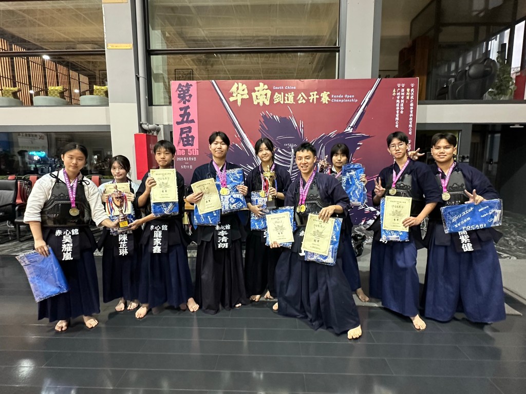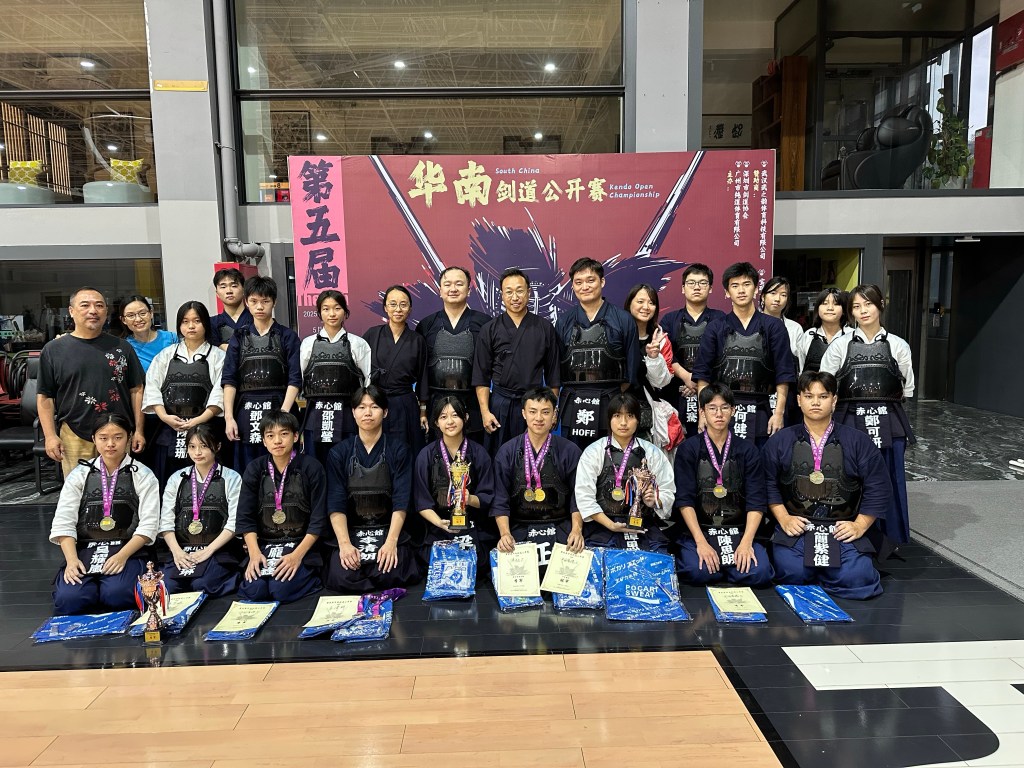 在剛過去的五月十日及十一日, 本會的一眾會員參加了於佛山舉行的「華南劍道公開賽」。本會會員出戰多個組別賽事,包括青少年及成人的個人及團體賽。各位選手在比賽中表現超卓,努力突破自我,並在這次比賽中獲得多個奬項,成人組奬項包括男子個人賽(無段至初段組)季軍,男子個人賽(二段組)季軍。青少年組收獲豐富,本會囊括青少年組團體冠軍及兩項季軍,青少年男子個人組別亞軍及口季軍,以及青少年女子個人組別季軍。